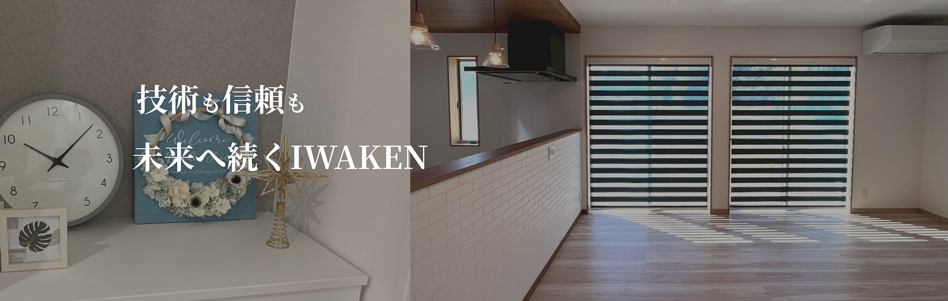 IWAKENの家づくり 新築・リフォーム施工例 土木部 公共工事施工例 会社情報 アクセス 人材募集 NEWS 新着情報・お知らせ 2025.11.26 NEW 新築・リフォーム施工例 代々、大切に受け継がれてきたお家のリノベーション 2025.11.14 NEW ブログ 11月15日(土)16日(日)はお待ちしています(^^)/ 2025.11.10 NEW ブログ renovation見学会開催 2025.07.22お知らせZEH普及目標及び実績報告